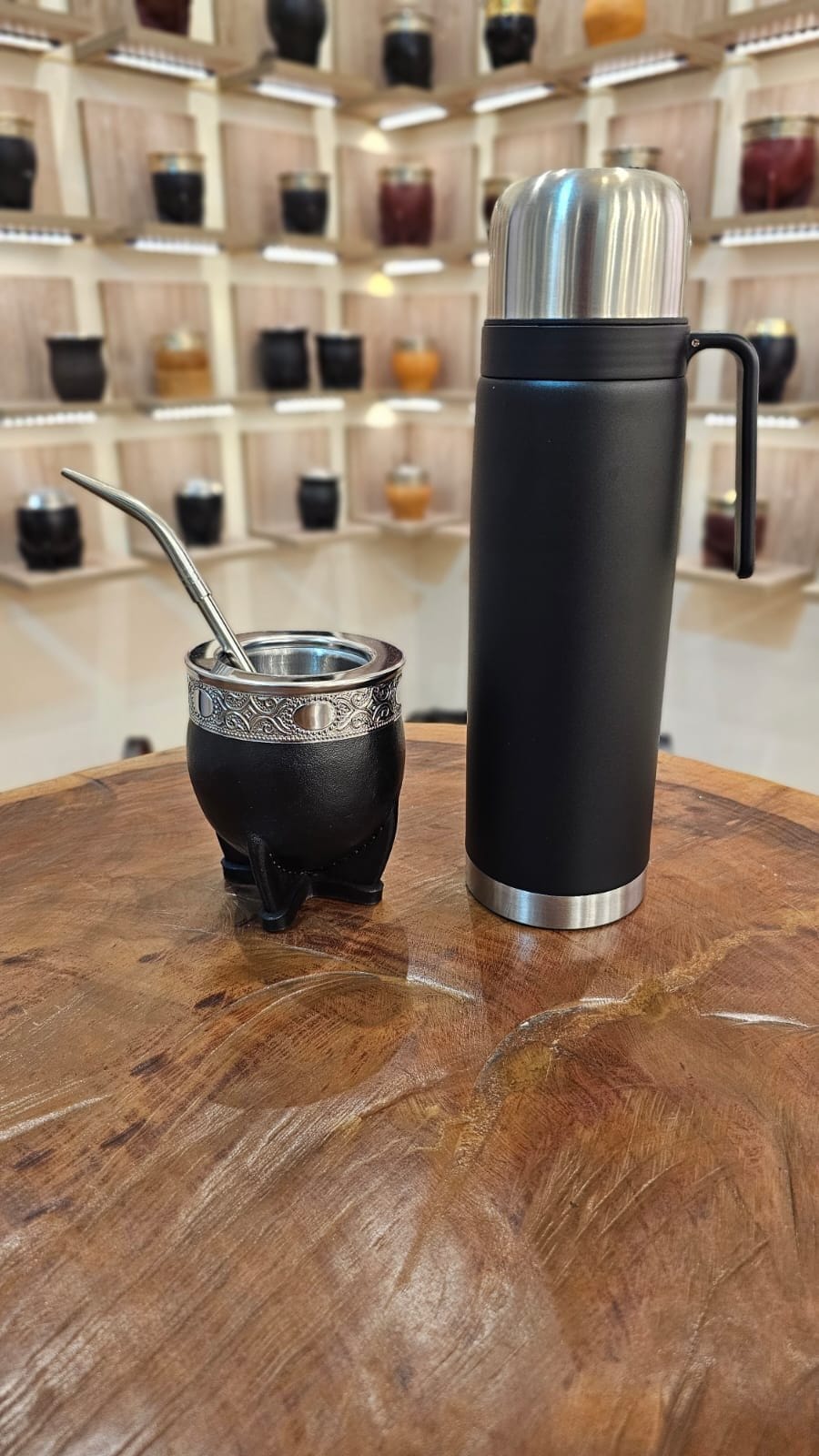- El combo esta compuesto por termo media manija negro, mate imperial clásico virola de acero y Bombilla pico de loro de acero. El combo perfecto para acompañarte día a día.